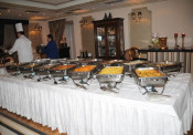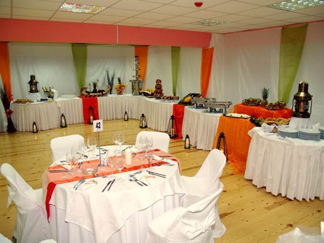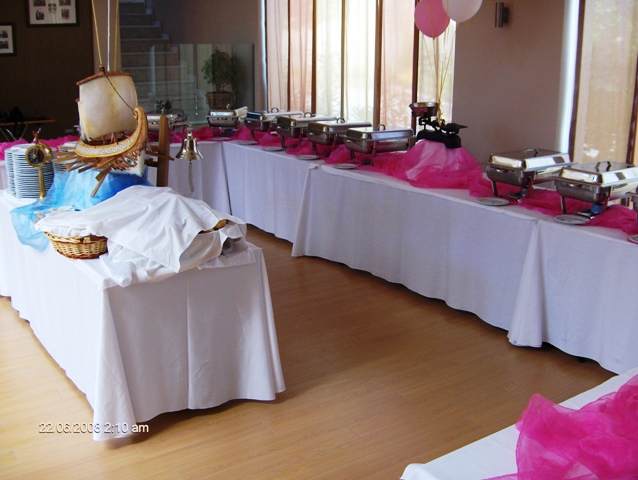 Αναλαμβάνουμε εξ' ολοκλήρου την δέσμευση, ότι οι καλεσμένοι σας, με την πρώτη κιόλας ματιά, θα εντυπωσιαστούν και θα μαγευτούν με την διακόσμησή μας, το στρώσιμο των τραπεζιών, με τα πορσελάνινα σερβίτσια και τα κρυστάλλινα ποτήρια που λαμπιρίζουν και σίγουρα με τις σκαλιστές διακοσμήσεις και τις συνθέσεις του μπουφέ. Ας μην ξεχνάμε τα γλυπτά από πάγο που μαγεύουν με την λάμψη τους και τον ιδιαίτερο φωτισμό τους.