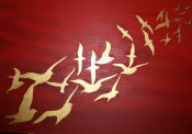Διαστ 60 Χ 80 εκ Μικτη τεχνικη. Λαδι σε καμβα Τα πουλιά με φύλλο χρυσού