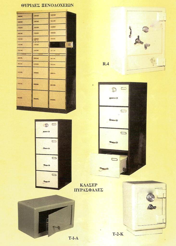 Η ίδρυση της επιχείρησης μας είναι από το 1900. Η πορεία και διάρκεια 100 και πλέον χρόνων είναι ορόσημο για την ποιότητα των προϊόντων μας. Τα χρηματοκιβώτια μας είναι εφάμιλλα του εξωτερικού με ευρωπαϊκές προδιαγραφές δηλαδή γίνονται με ισχυρές αντιστάσεις ώστε να είναι αδιάρρηκτα και πυρασφαλή. Διαθέτουμε εκτός από χρηματοκιβώτια και φοριαμούς (κλασέρ) 2 – 3 και 4 συρταριών πυρασφαλή. Από το 1995 δίνουμε στους πελάτες μας και αγοραστές πιστοποιητικό ακαίας έως 950ο C, από το Εθνικό Μετσόβιο Πολυτεχνείο. Εμπορευόμαστε ακόμη και ηλεκτρονικούς ζυγούς όλων των δυναμικοτήτων δηλαδή από μισό γραμμάριο έως πλάστιγγες 2-3 τόνων εξωτερικού.