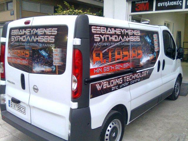 αυτοκόλλητα, μουσαμάδες, πανό εκδηλώσεων, διαφημιστικά σταντ, κάλυψη οχημάτων 3Μ, διακοσμητική αμμοβολή τζαμιών, μακέτες, κάρτες, φυλλάδια