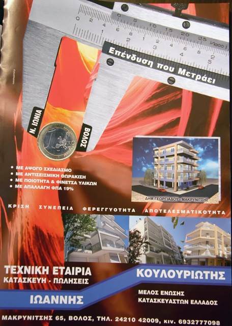 Ακινήτων πρότυπων κατασκευών σε Βόλο και Νέα Ιωνία.