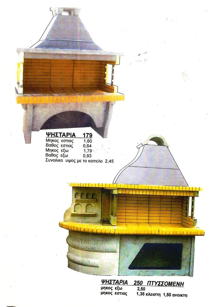 Ψησταριά με φούρνο,περιλαμβάνει μεταλλική θήκη για την καύση των ξύλων & ένα δεύτερο κώνο μεταλλικό μέσα-κατώ απο τον τσιμεντένιο.Η πόρτα του φούρνου είναι μεταλλική.Διαστάσεις Π240 Β110 Υ246 1350 κιλά.